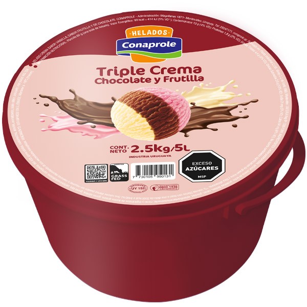 Helado Conaprole 5L Frutilla, Vainilla y Chocolate