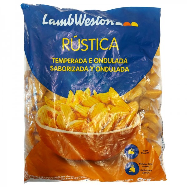 Papas prefritas en forma de cuña sazonadas para hacer al horno o para freír. Paquete de 2 Kg. Marca Lamb Weston. Importadas de Holanda.