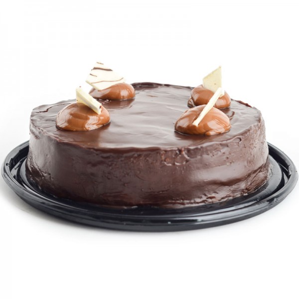 Tres capas de bizcochuelo casero, mojado en almíbar, dos capas de dulce de leche y bañado en salsa de chocolate.
